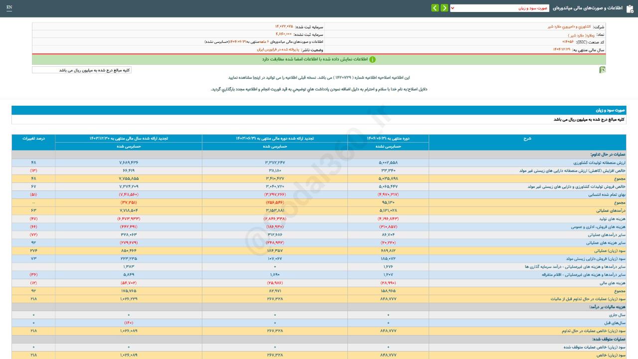 اطلاعات و #صورت‌های_مالی_میاندوره‌ای #دوره_6_ماهه منتهی به 14040631 حسابرسی نشده شرکت #کشاورزی_و_دامپروری_ملارد_شیر