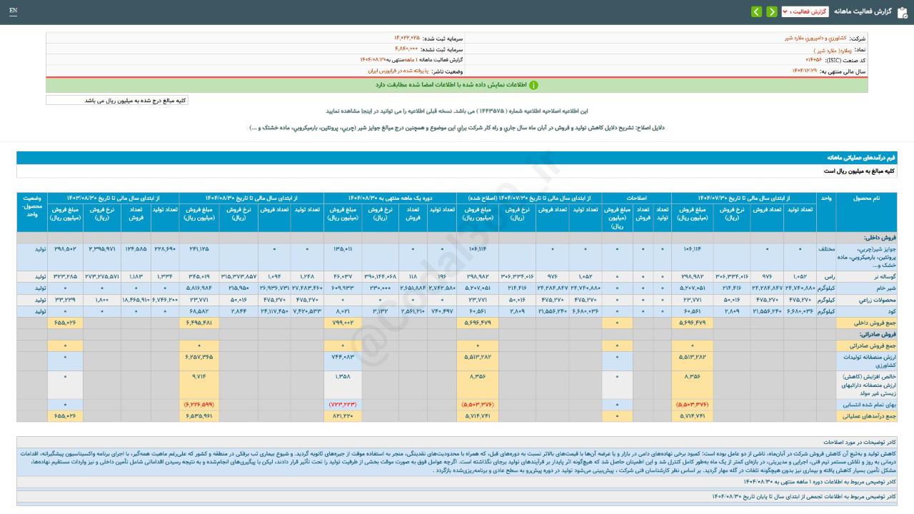 #گزارش_فعالیت_ماهانه #دوره_1_ماهه منتهی به 14040830 شرکت #کشاورزی_و_دامپروری_ملارد_شیر