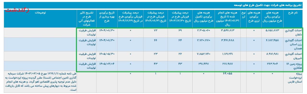 *احداث گاوداري دلفان ،با هزینه ی برآوردی تکمیل طرح معادل 231 میلیارد تومان که تاریخ برآوردی بهره برداری از طرح آبان 1404 اعلام شده است.