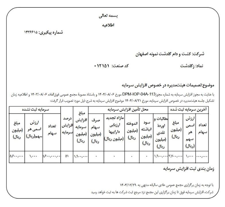 #صدور_مجوز_افزایش_سرمایه #زگلدشت
