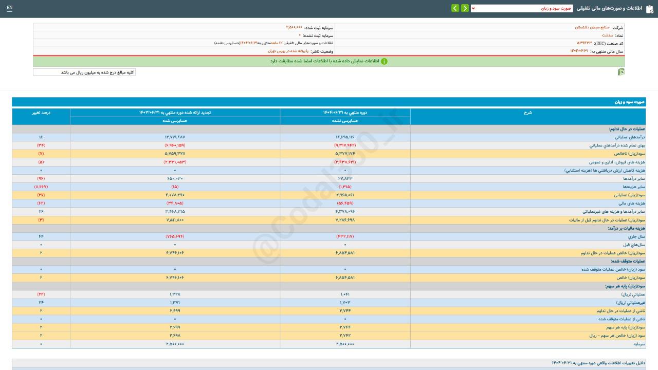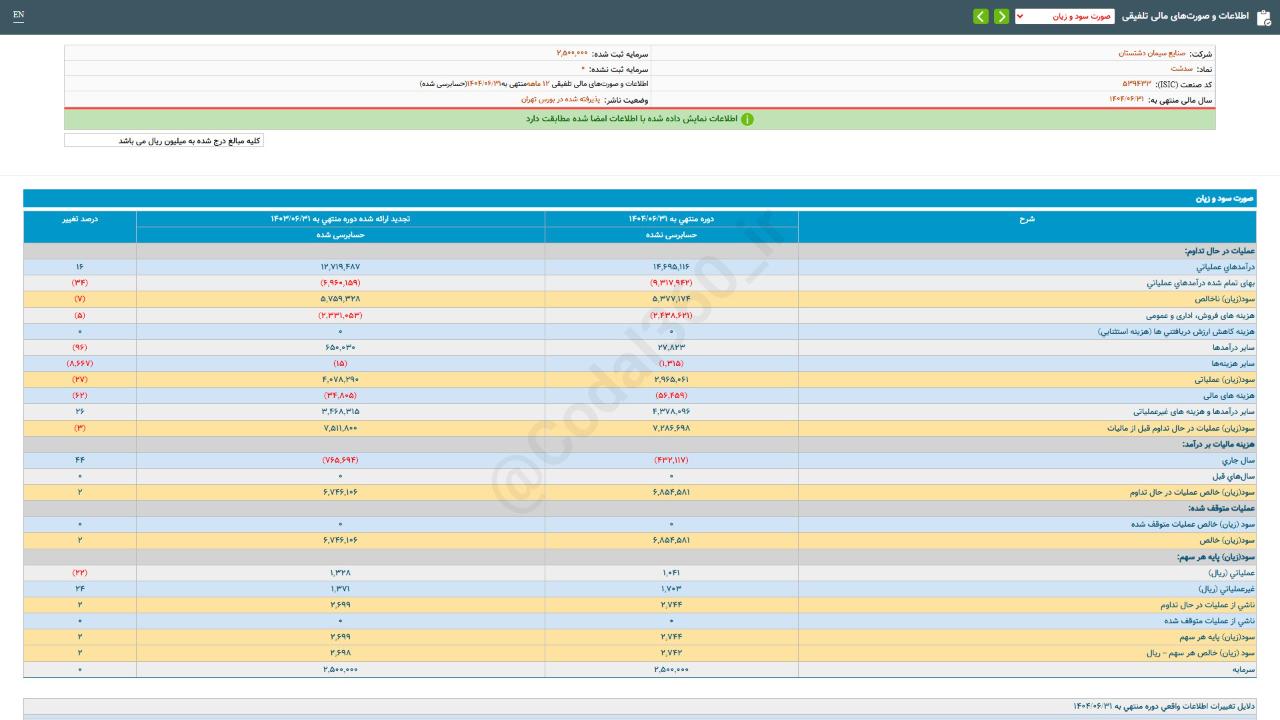 #صورتهای_مالی تلفیقی سال مالی منتهی به 14040631 حسابرسی نشده شرکت #صنایع_سیمان_دشتستان