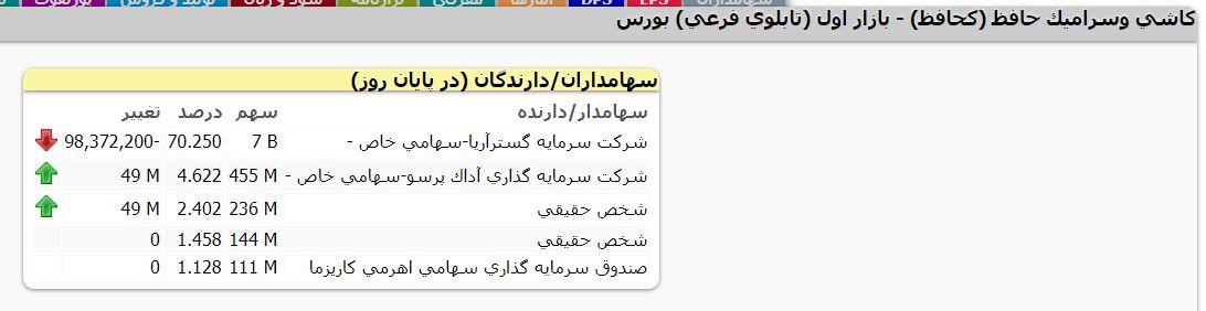 #کحافظ در معامله بلوکی دیروز 28 مردادماه سهامدار عمده شرکت یعنی شركت سرمايه گسترآريا بود