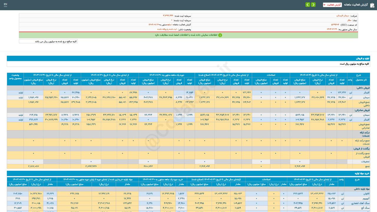 #گزارش_فعالیت_ماهانه #دوره_1_ماهه منتهی به 14040730 شرکت #سیمان_لارستان
