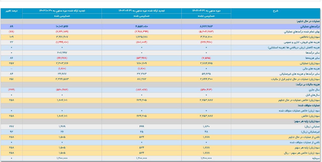 رشد چشمگیر سود عملیاتی #سناوند طبق گزارش حسابرسی نشده منتهی به 31 تیر 1404 در مقایسه با مدت مشابه سال قبل خودش بیش از 258 درصد رشد داشت و از 524 ریال به 1878 ریال حسابرسی نشده رسیده است.