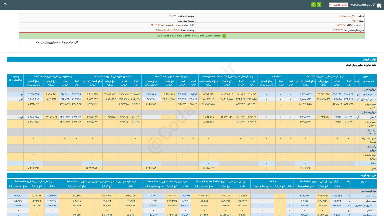 #گزارش_فعالیت_ماهانه #دوره_1_ماهه منتهی به 14040730 شرکت #صنایع_سیمان_نهاوند