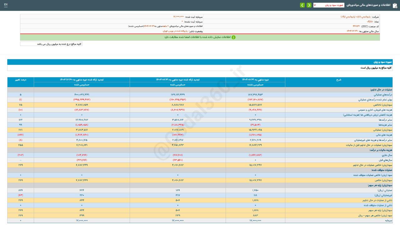 اطلاعات و #صورتهای_مالی_میاندورهای تلفیقی #دوره_6_ماهه منتهی به 14040631 حسابرسی شده شرکت #پتروشیمی_شازند_پتروشیمی_اراک
