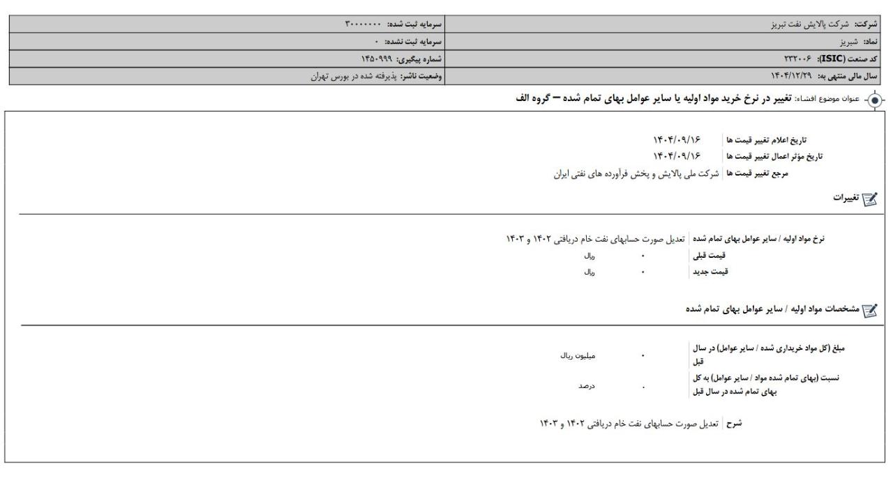 منتشر شده در اصلاحیه اطلاعات و صورتهای مالی میاندوره ای دوره 6ماهه منتهی به 1404.06.31 حسابرسی نشده ، تاریخ انتشار در کدال 1404.08.03