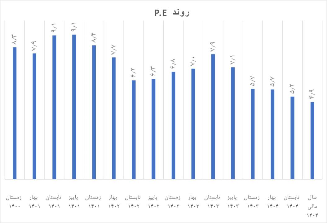 در نیمه اول سال حجم کمتری از محصول تولید شده را فروخت اما اگر فرض کنیم که در نیمه دوم سال تولید نرمال باشد و موجودی انبار با حاشیه سود 27درصد به فروش برسد با ارزش بازار 7.8همتی p.efw آن با سود سال 1404 کمتر از 5 واحد خواهد بود.