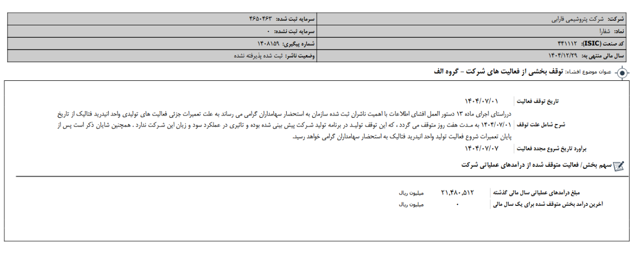 افشای اطلاعات بااهمیت،توقف بخشی از فعالیت های شرکت-گروه الف