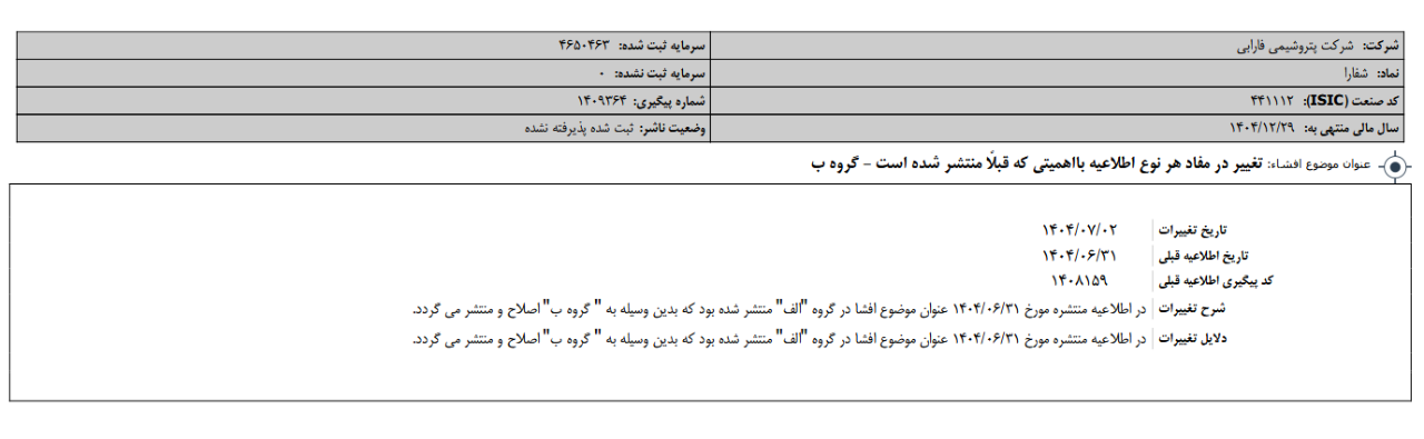 افشای اطلاعات بااهمیت،تغيير در مفاد هر نوع اطلاعيه بااهميتي كه قبلاً منتشر شده است - گروه ب
