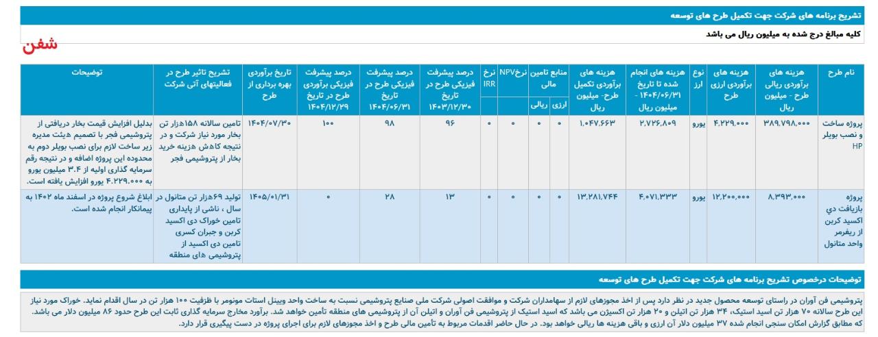 پیشرفت فیزیکی پروژه زیستمحیطی بازیابی CO₂ از گازهای حاصل از احتراق کوره ریفورمر واحد متانول پتروشیمی فنآوران وابسته به شستا با ۳۲ درصد در حال اجراست.