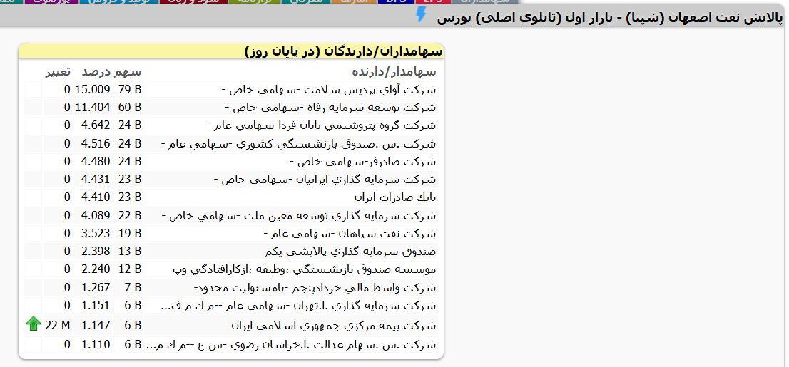 در نماد شپنا امروز 22 آذر 1404 تعداد 782 میلیون سهم به صورت بلوکی معامله گردید خریدار و فروشنده پالايش نفت اصفهان در این معامله بلوکی حقوقی بود. سه خریدار و دو فروشنده معامله را انجام دادند.قیمت هر سهم 5694 ریال بود.