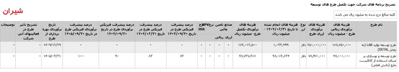 *طرح توسعه و نوسازي بر مبناي استفاده از کاتاليست مايع {دانش فعلي} ،،با هزینه ی برآوردی تکمیل طرح معادل 3.874 میلیارد تومان که تاریخ برآوردی بهره برداری از طرح خرداد1405 اعلام شده است.