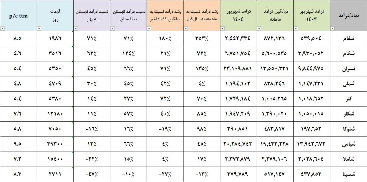 ➕شرکت های مورد اشاره در مهر+آبان 30درصد بیشتر از کل پاییز403 درآمد کسب کردند و متوسط P.ettm آن ها 7.5 است لذا گزینه تحلیل جامع هستند.