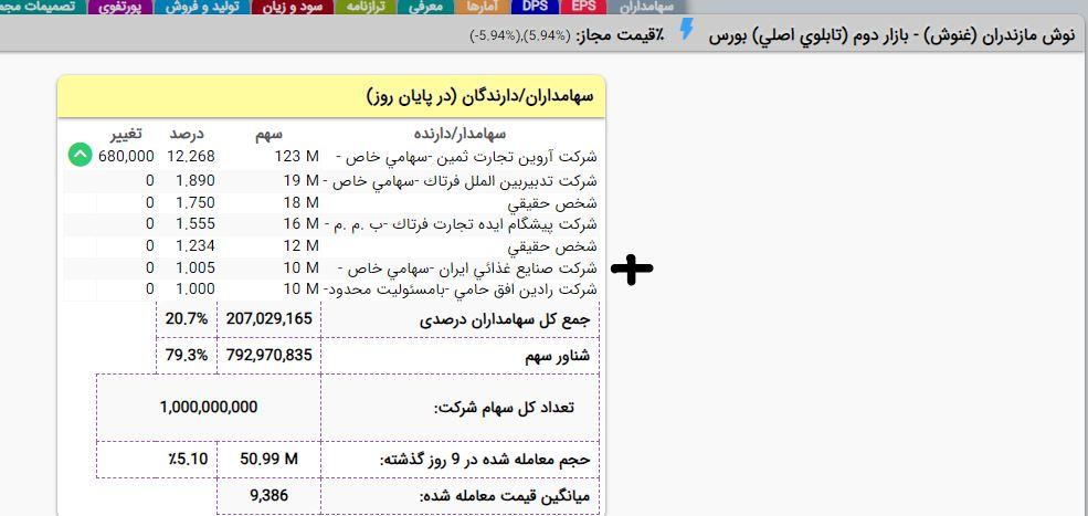 فروشنده #غنوش در معامله بلوکی دیروز 18 آبان ماه شركت صنايع غذائي ايران بود