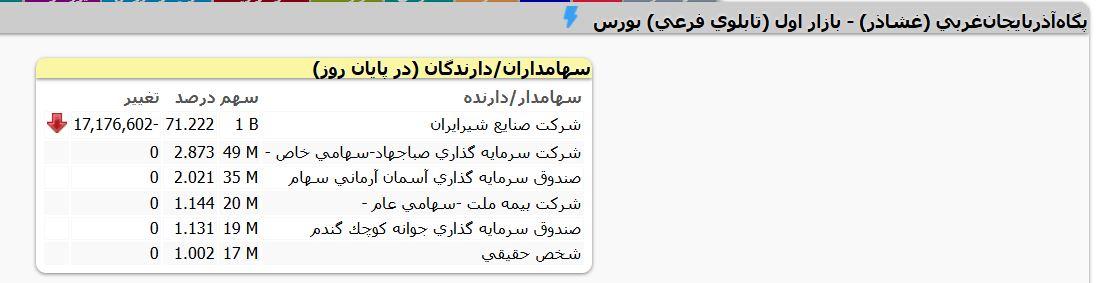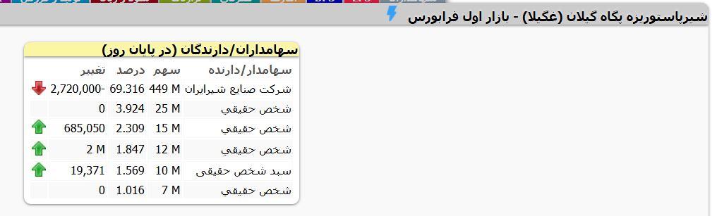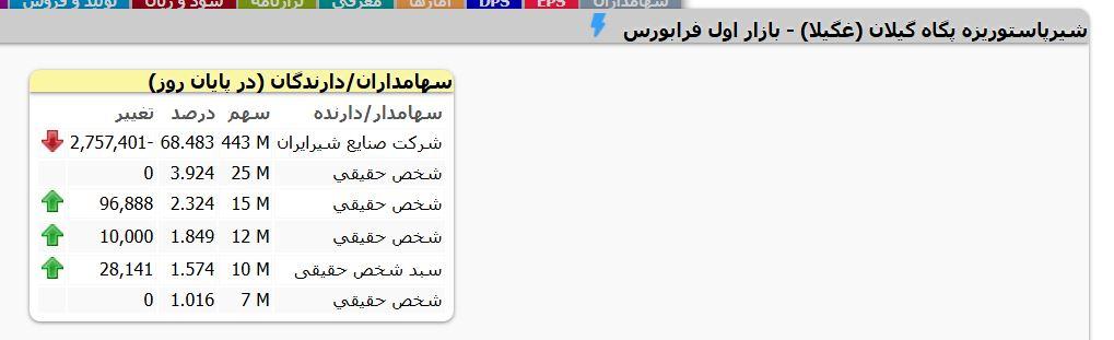 فروشنده #غگلپا در معامله بلوکی دیروز 23 تیرماه 1404 شركت صنايع شيرايران بود