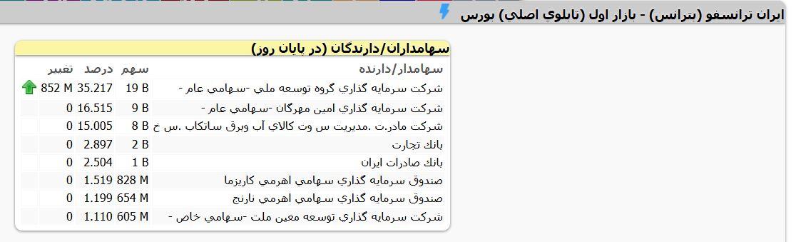 خریدار #بترانس در معامله بلوکی دیروز 17 تیرماه شرکت سرمايه گذاري گروه توسعه ملي بود.