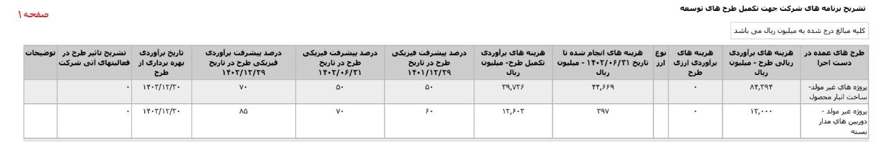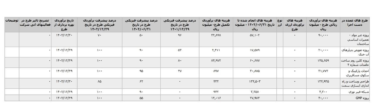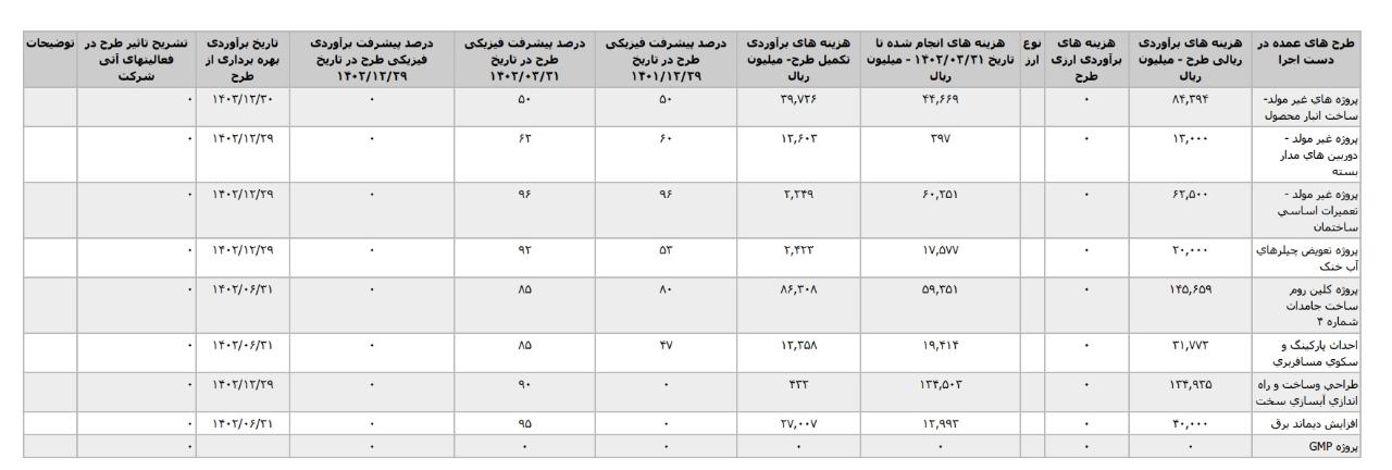 * احداث کلین روم گرانول سازی، با هزینه ی برآوردی تکمیل طرح معادل 22 میلیارد تومان که تاریخ برآوردی بهره برداری از طرح اسفند1405 اعلام شده است