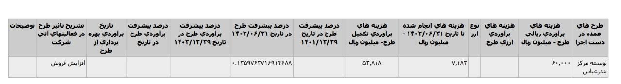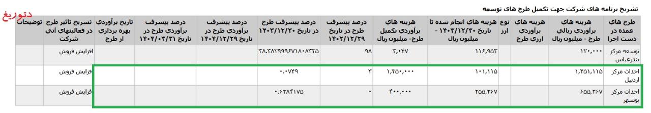 *احداث مرکز بوشهر، با هزینه برآوردی تکمیل طرح معادل 17 میلیارد تومان که تاریخ برآوردی بهره برداری از طرح اعلام نشده است.