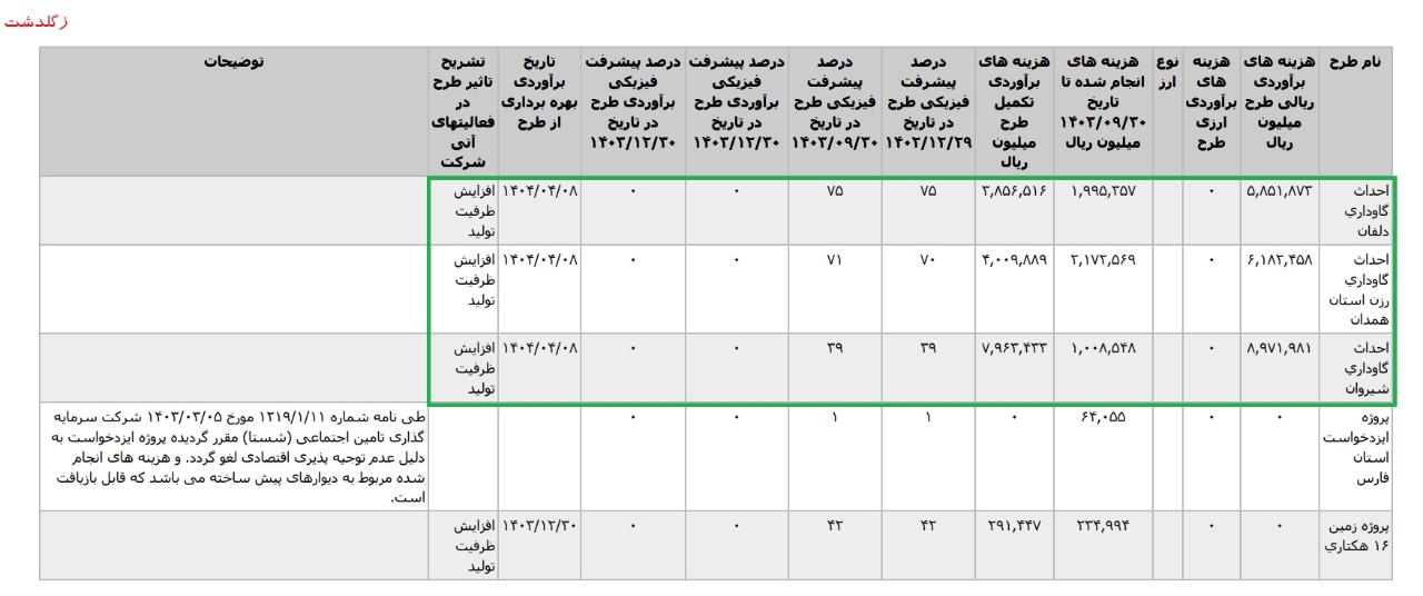 *احداث گاوداري دلفان ،با هزینه ی برآوردی تکمیل طرح معادل 231 میلیارد تومان که تاریخ برآوردی بهره برداری از طرح آبان 1404 اعلام شده است.