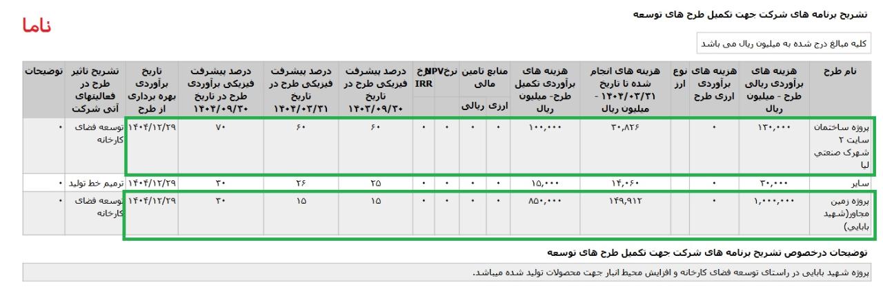 *پروژه ساختمان سایت 2 شهرک صنعتی لیا، با هزینه ی برآوردی تکمیل طرح معادل 10 میلیارد تومان که تاریخ برآوردی بهره برداری از طرح در خرداد1406 اعلام شده است.