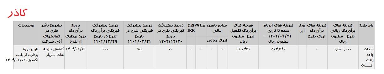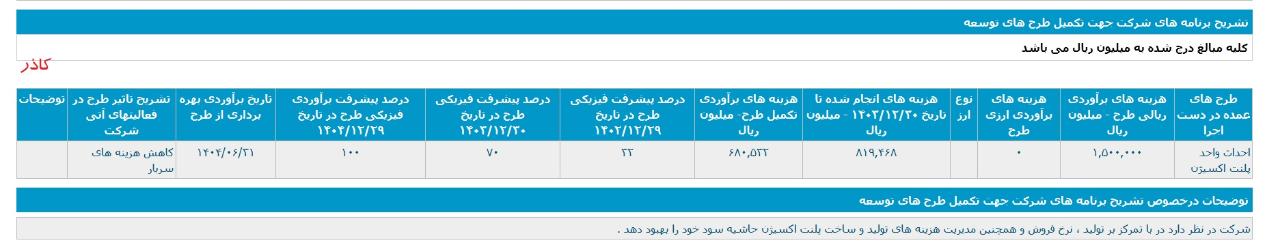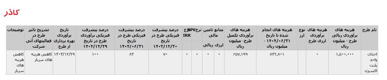 * احداث واحد پلنت اکسيژن ،با هزینه ی برآوردی تکمیل طرح معادل 66 میلیارد تومان که تاریخ برآوردی بهره برداری از طرح در فروردین 1405 اعلام شده است.
