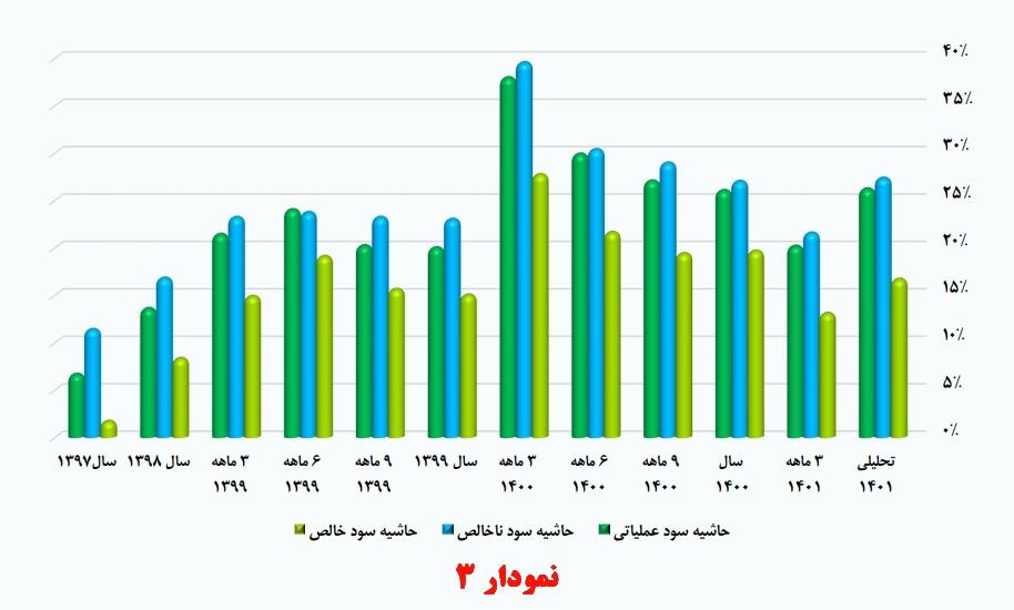 همچنان روند صعودی داشته باشد. #حاشیه_سود_ناخالص از 11 درصد در سال 1397 به 22 درصد در 3 ماهه 1401 افزایش یافته است. همچنین #حاشیه_سود_خالص و #عملیاتی با روند صعودی همراه بوده است.
