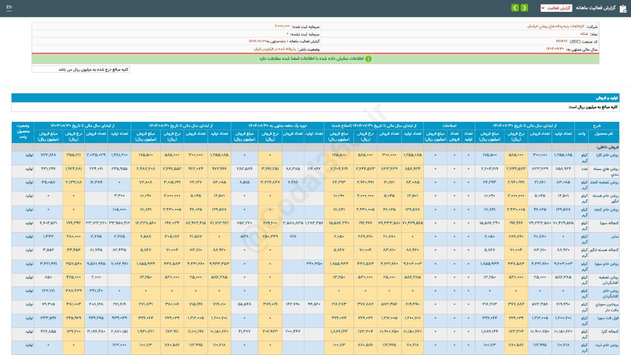 #گزارش_فعالیت_ماهانه #دوره_1_ماهه منتهی به 14040830 شرکت #کارخانجات_پنبه_ودانه_های_روغنی_خراسان