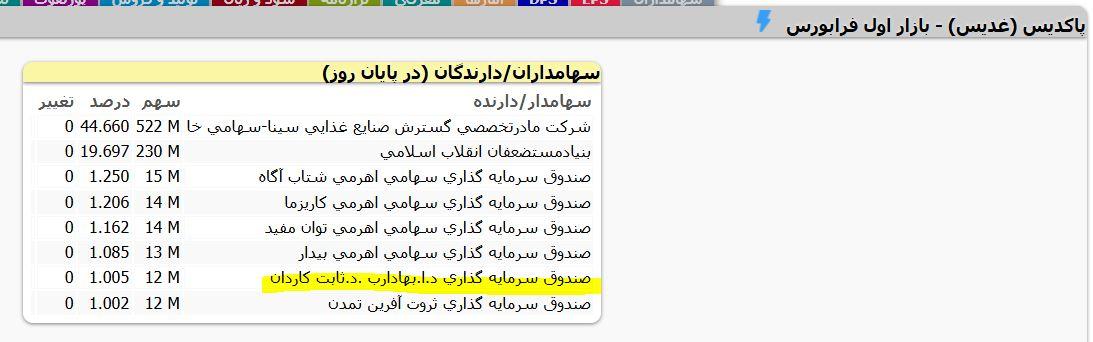 خریدار #غدیس در معامله بلوکی دیروز 5 مردادماه صندوق سرمايه گذاري د.ا.بهادارب .د.ثابت كاردان بود که با این خرید به جمع سهامداران بالای یک درصد شرکت پیوست.