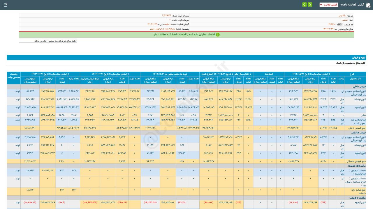 #گزارش_فعالیت_ماهانه #دوره_1_ماهه منتهی به 14040631 شرکت #پاکدیس