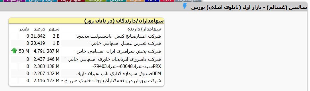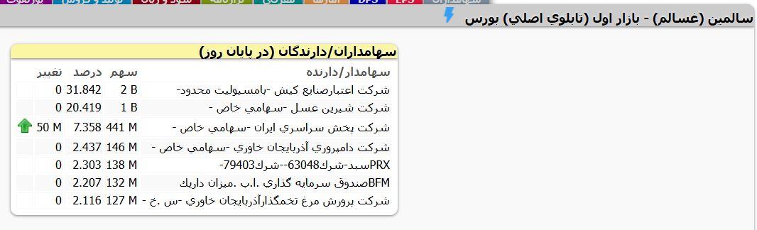 در روز معاملاتی 5 شهریورماه شركت پخش سراسري ايران در معامله بلوکی اقدام به خرید 50 میلیون سهم #غسالم در قیمت 3021 ریال نمود.