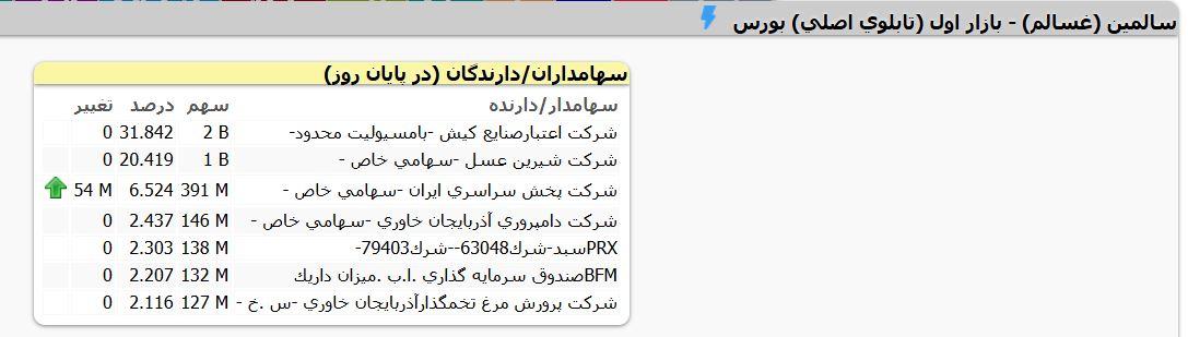 خریدار #غسالم در معامله بلوکی دیروز 3 شهریورماه شركت پخش سراسري ايران بود که جدای از این بلوک 4 میلیون سهم را هم در بازار عادی خریداری نمود.