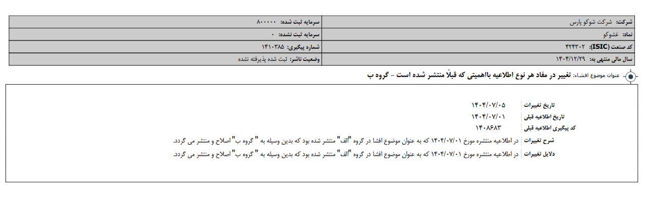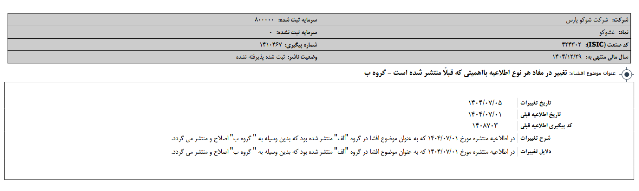 افشای اطلاعات بااهمیت، تغيير در مفاد هر نوع اطلاعيه بااهميتي كه قبلاً منتشر شده است - گروه ب