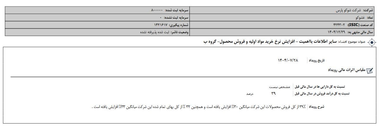 افشای اطلاعات بااهمیت،افزایش نرخ خرید مواد اولیه و فروش محصول-گروه ب