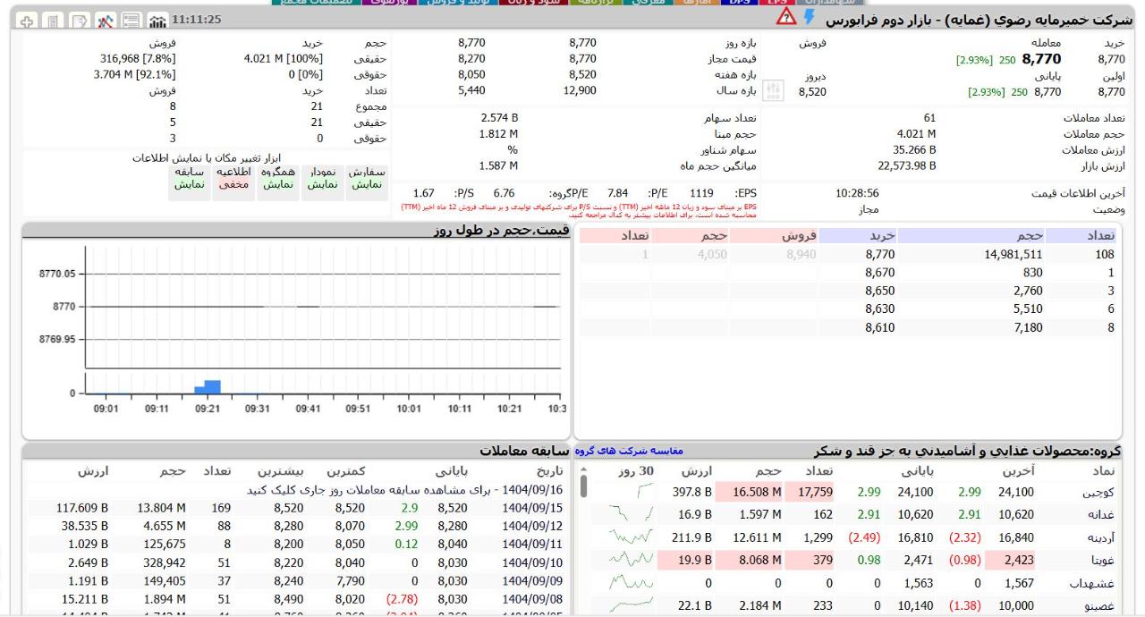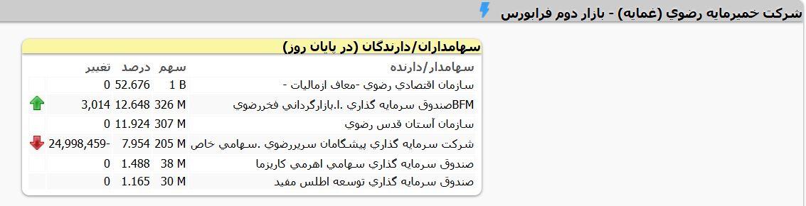 فروشنده #غمایه در معامله بلوکی روز 12 شهریورماه شركت سرمايه گذاري پيشگامان سريررضوي بود
