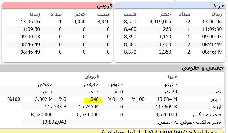 دیروز 15 آذر 1404 در نماد #غمایه معاملات جالبی انجام شد. 13 میلیون و 804 هزار سهم رد قیمت 852 تومان معامله شد که فقط #1848 سهمش رو سه تا حقیقی فروختند بقیه رو حقوقیفروخت تقریبا 100 درصد سهام رو. و همه خرید توسط حقیقی ها انجام شد. فروشنده حدود 3.4 میلیون سهم این معاملات صندوق سرمايه گذاري سهامي اهرمي كاريزما بود