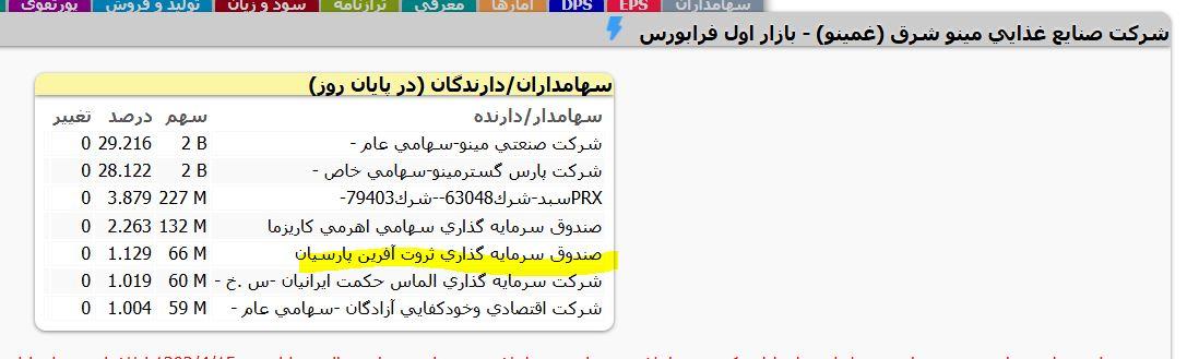 خریدار #غمینو در معامله بلوکی دیروز 20 مردادماه صندوق سرمايه گذاري ثروت آفرين پارسيان بود که با این خرید به جمع سهامداران بالای یک درصد این شرکت پیوست.