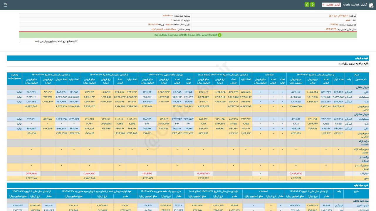 #گزارش_فعالیت_ماهانه #دوره_1_ماهه منتهی به 14040730 شرکت #صنایع_غذایی_مینو_شرق