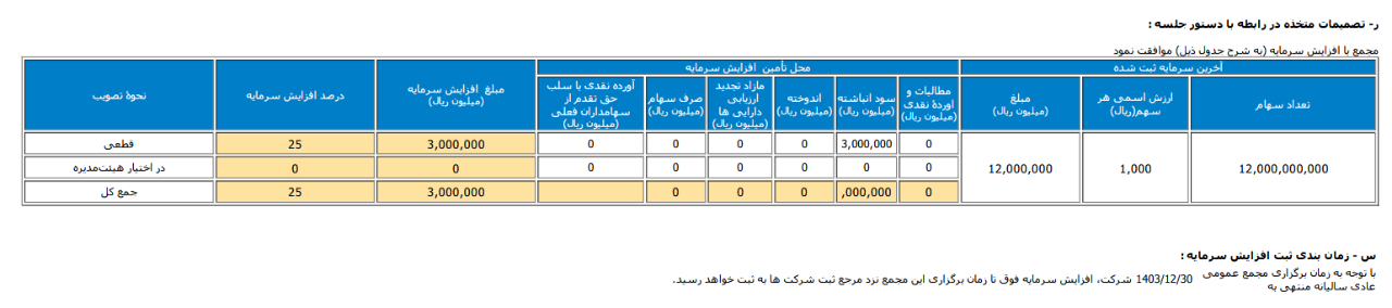 درصد افزایش سرمایه:25%