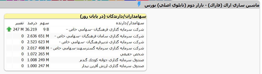خریدار #فاراک در معامله بلوکی روز 2 آذرماه شركت سرمايه گذاري فرهنگيان بود