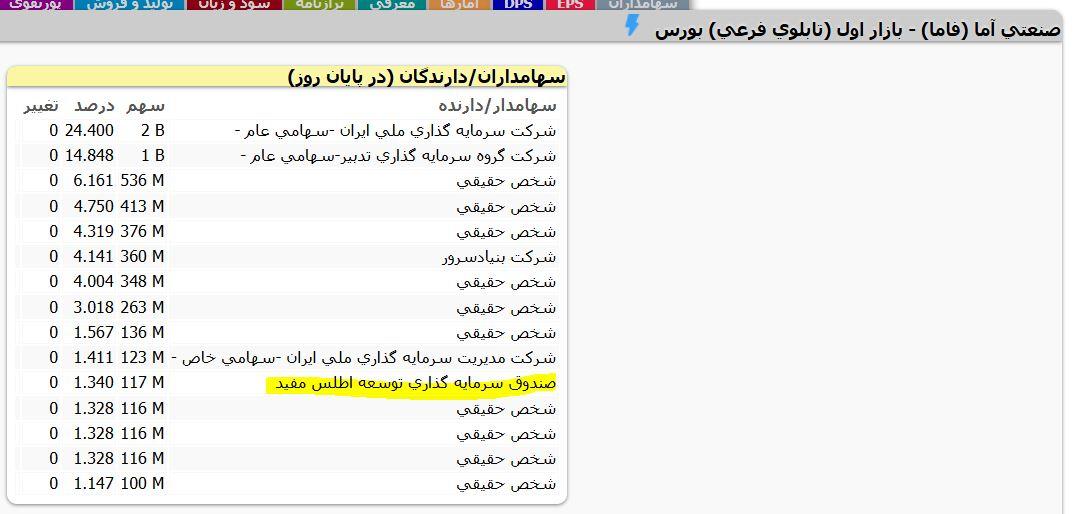 یکی از خریداران #فاما در معامله بلوکی روز 21 آبان ماه صندوق سرمايه گذاري توسعه اطلس مفيد بود که با این خرید به جمع سهامداران بالای یک درصد شرکت پیوست.