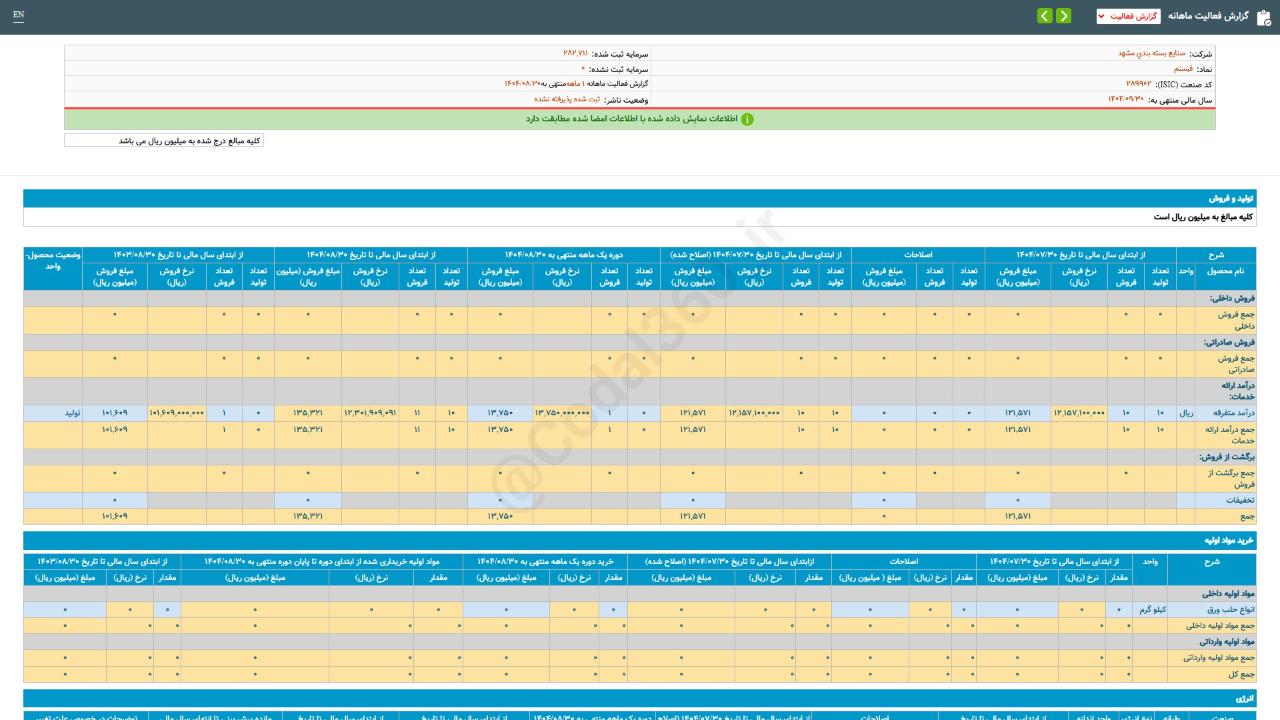 #گزارش_فعالیت_ماهانه #دوره_1_ماهه منتهی به 14040830 شرکت #صنایع_بسته_بندی_مشهد