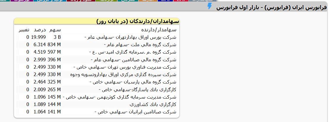 در نماد فرابورس امروز 4 آبان 1404 تعداد 14 میلیون سهم به صورت بلوکی معامله گردید فروشنده و خریدار فرابورس ايران در این معامله بلوکی حقوقی بود. یک خریدار و دو فروشنده معامله را انجام دادند.قیمت هر سهم 7410 ریال بود. #فرابورس#بلوکی
