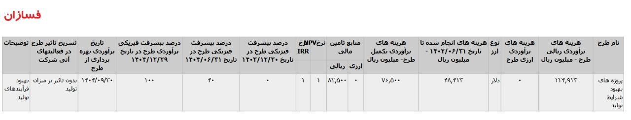 آپدیت تشریح برنامه های #فسازان جهت تکمیل طرح های توسعه منتشر شده در اطلاعات و صورتهای مالی میاندوره ای دوره 63 ماهه منتهی به 1404.06.31 حسابرسی نشده ، تاریخ انتشار در کدال 1404.07.30 *پروژه هاي بهبود شرايط توليد ، با هزینه ی برآوردی تکمیل طرح معادل 8 میلیارد تومان که تاریخ برآوردی بهره برداری از طرح آذر 1404 اعلام شده است. #طرح_توسعه #طرح_توسعه_فسازان