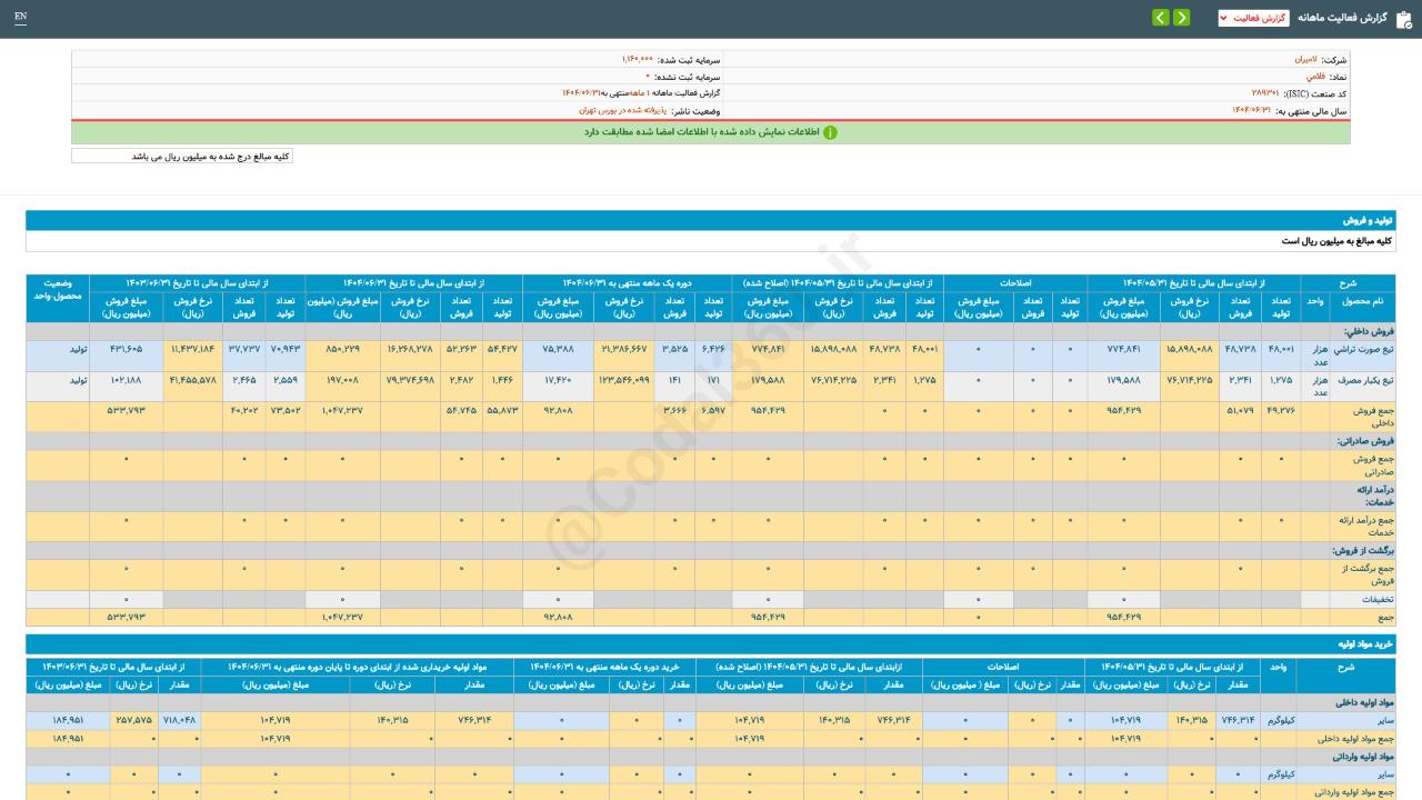 #گزارش_فعالیت_ماهانه #دوره_1_ماهه منتهی به 14040631 شرکت #لامیران