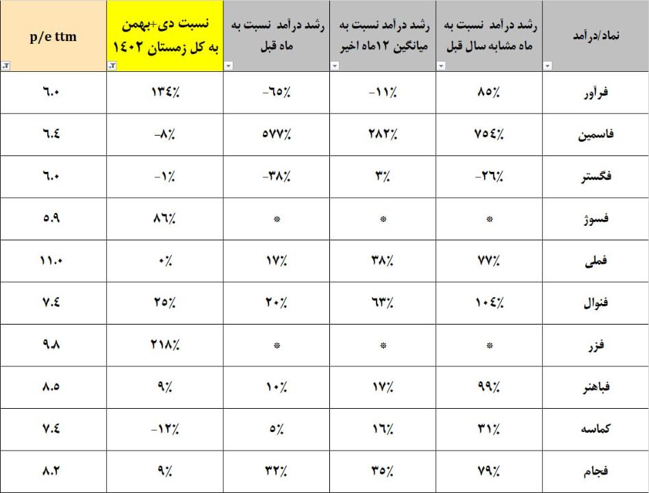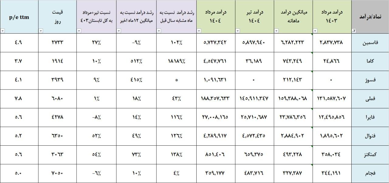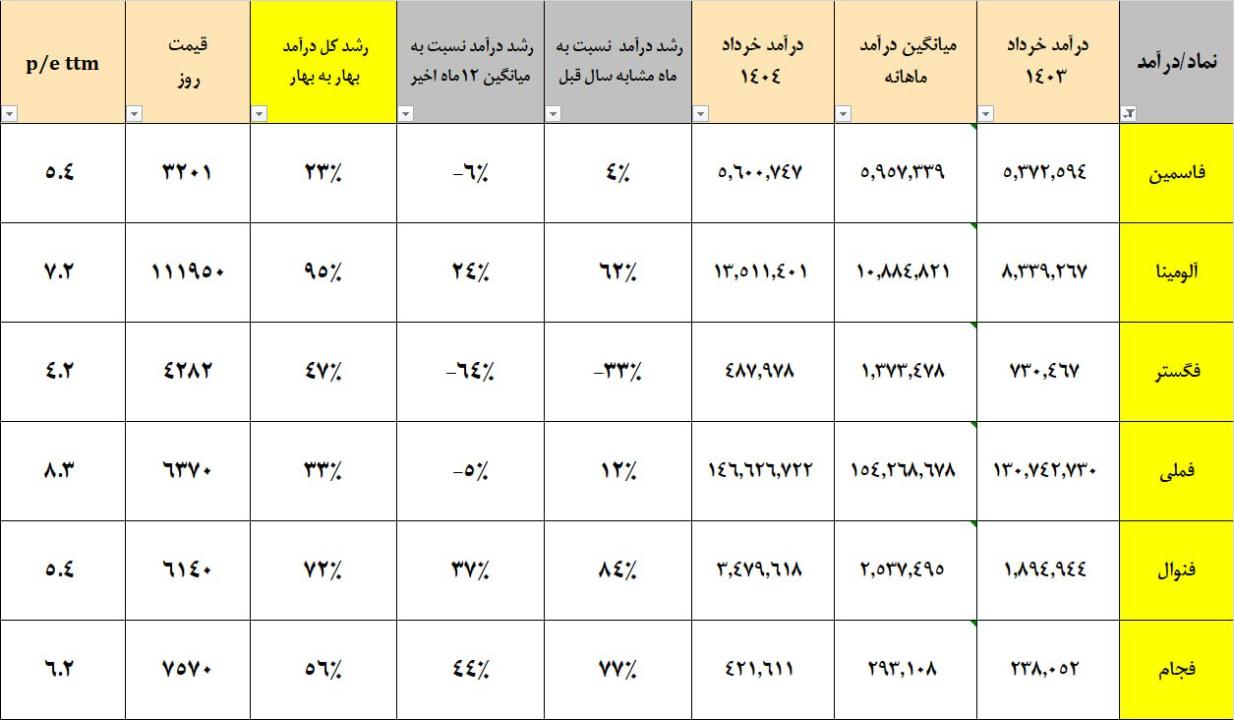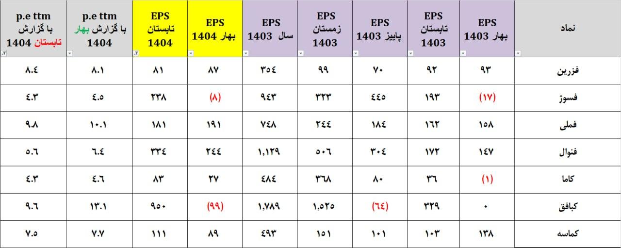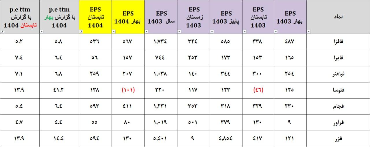 عمدتا این شرکت ها در مقایسه با مهر سال گذشته عملکرد خوبی داشته اند ضمن اینکه بخش مهمی از پاییز 1403 را در مهر 1404 پوشش داده اند لذا می توان به p.efw های مناسب تری امیدوار بود و گزینه تحلیل هستند.