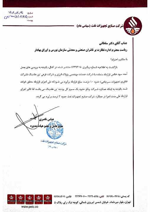 مجمع عمومی عادی سالیانه شرکت صنايع تجهيزات نفت روز 30 تیر 1404 با حضور 74.08 درصد سهامداران برگزار شد و با تصویب مجمع از سود 306 ریالی ایجاد شده مبلغ 220 ریال بین سهامداران تقسیم شد.