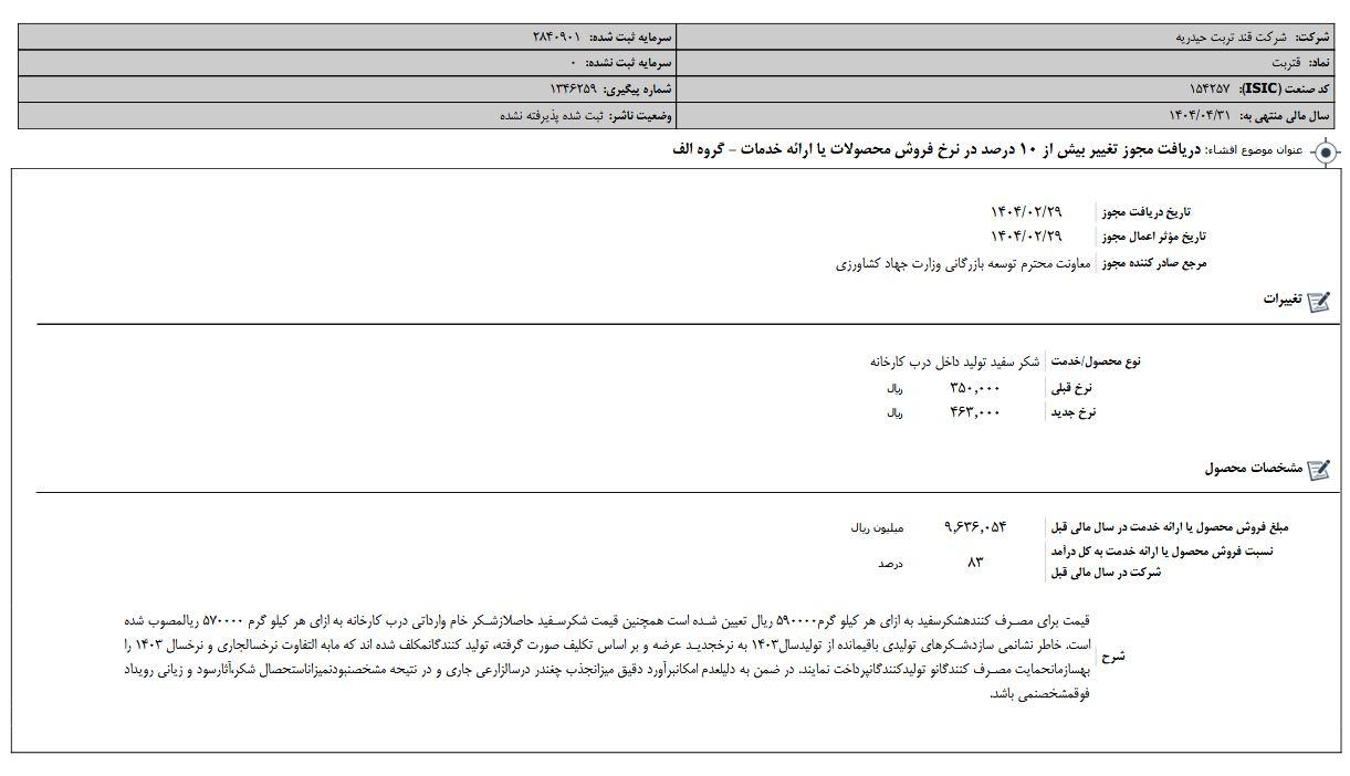 در برخی نمادها شاهد افزایش جذب چغندرتولید شکر بیشتر هستیم و این مساله در کنار میانگین P.ettm نمادهای این صنعت مطلوب است.