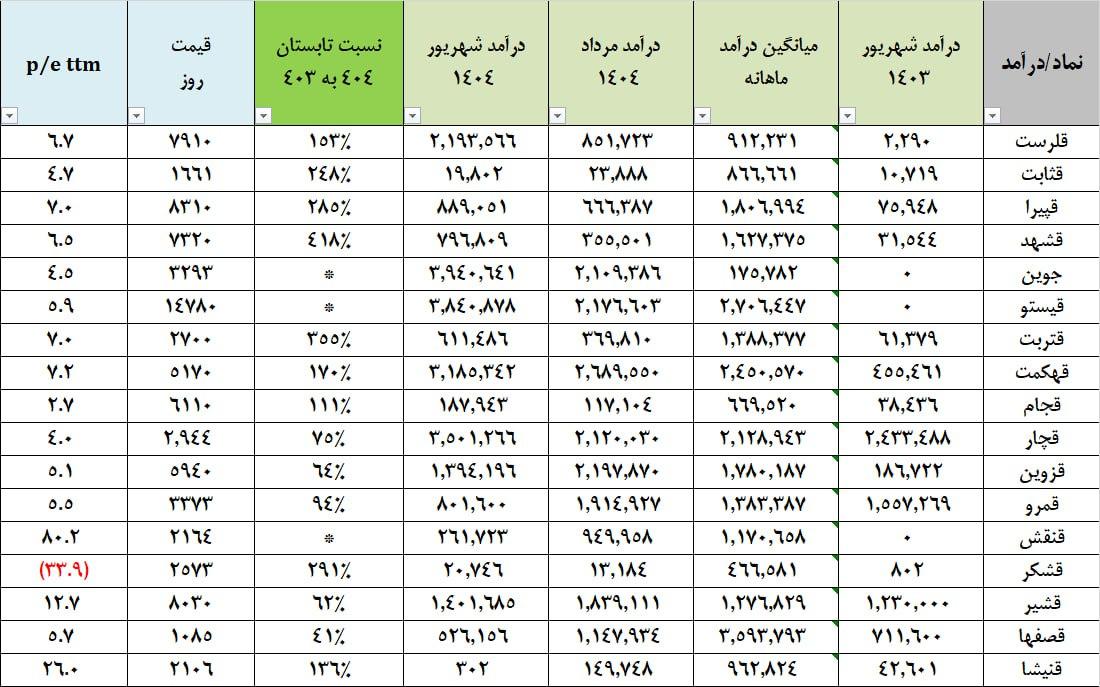 ●#قنقش درآمد[1,143م.ت]رشد206%