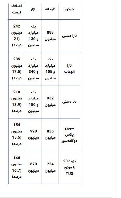 اختلاف قیمت تارا دستی در کارخانه و بازار کمی بیش از ۲۱ درصد برآورد میشود و این عدد برای دنا اتومات به ۱۴.۵ درصد تقلیل پیدا میکند.